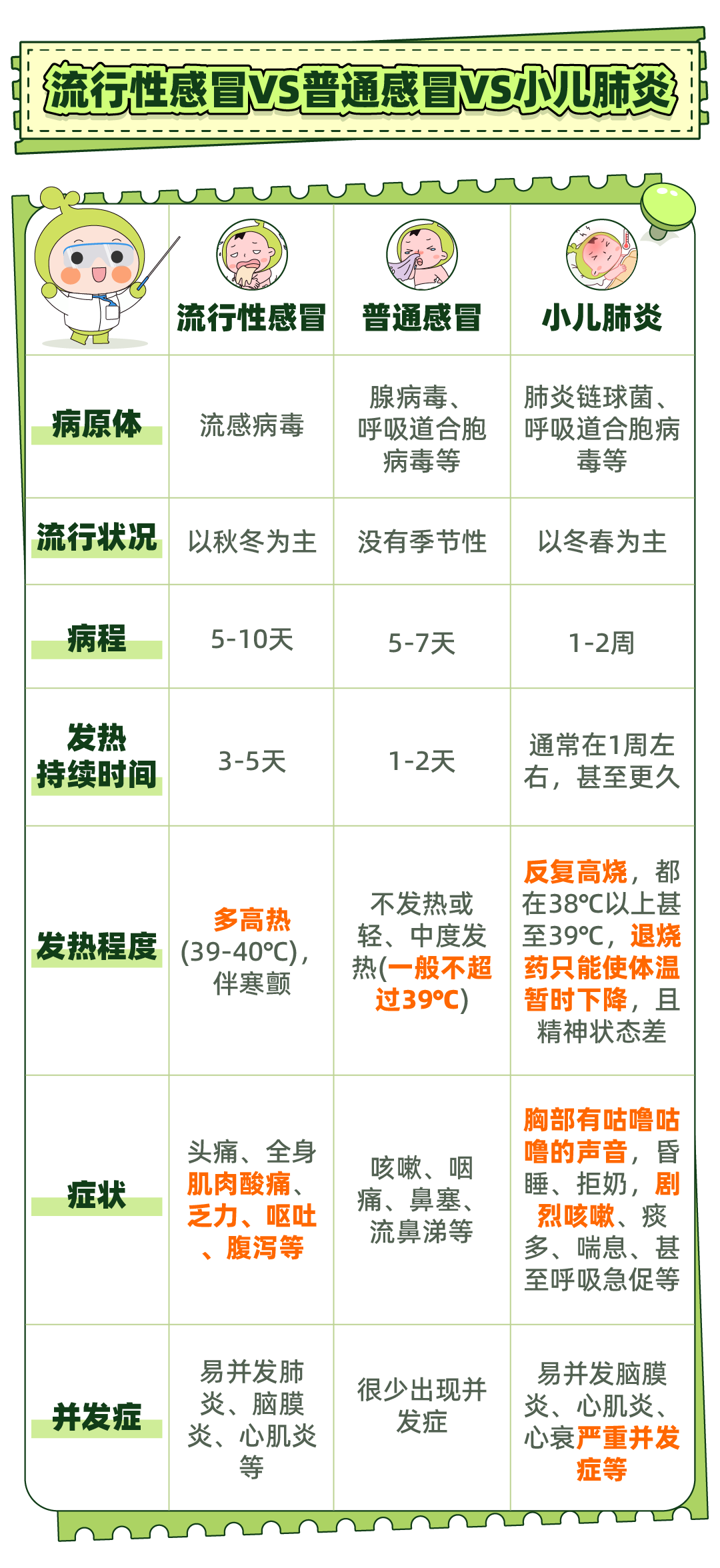 小豆苗为大家整理了流感、肺炎和普通感冒的区别,方便家长们需要的时候对照先做个初步判断,以免错过最佳治疗期。