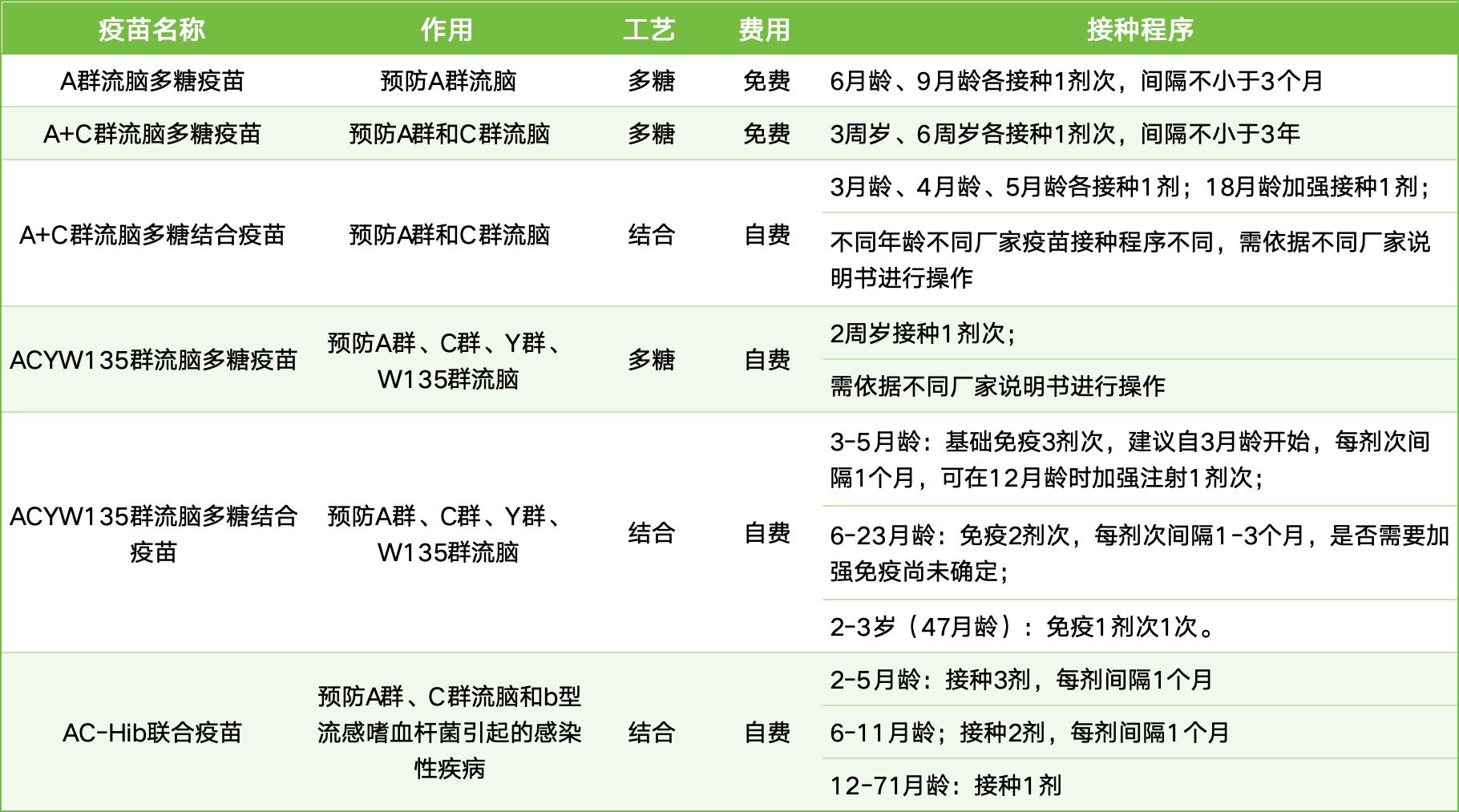 怎么看这6种流脑疫苗的区别呢?