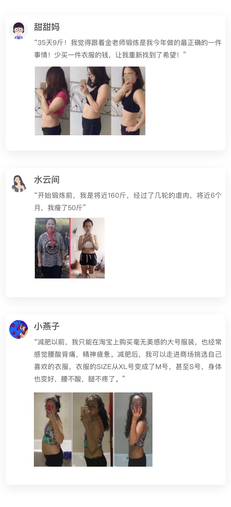 为了让自己的瘦身经验帮助更多的人,我考取了国家公共营养师、国家健身营养师和运动营养师资格,并成立线上减脂营,聘请了A+运动学院的专家、北京大学第一医院的骨科、妇产科专家,中国营养学会的专家作为减脂营的瘦身顾问。