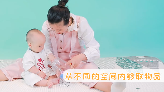 通过让宝宝从不同的空间内够取物品,能有效的锻炼宝宝小肌肉运动技能。