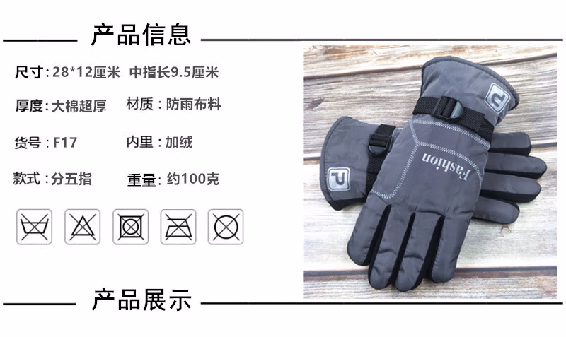 骑行手套加宽加大加厚男士大号大棉保暖防滑冬季加绒骑摩托车防寒 全黑色[加大加厚款]