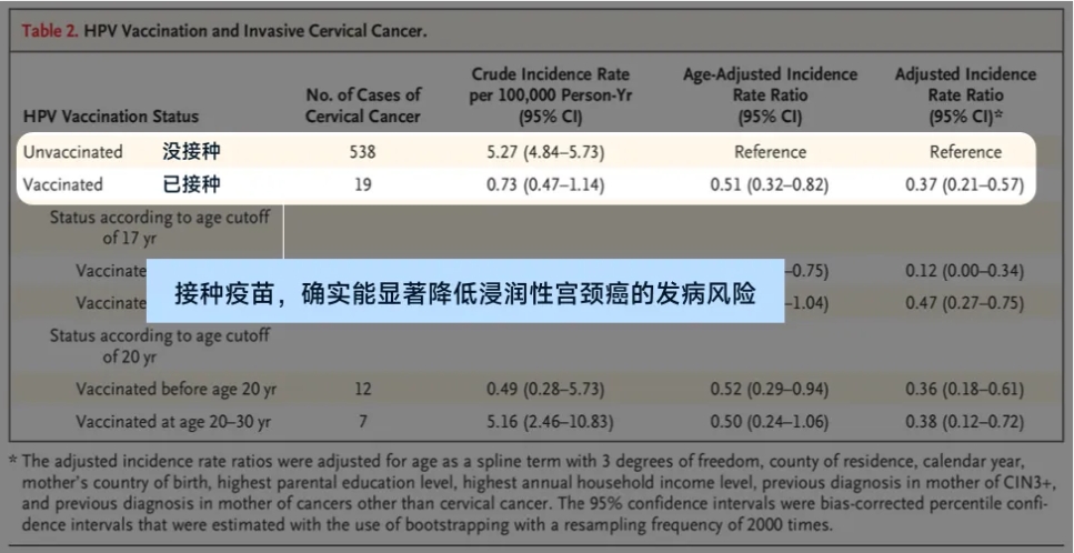 也就是说,没接种疫苗的女性, 患宫颈癌的概率增加了200% 。